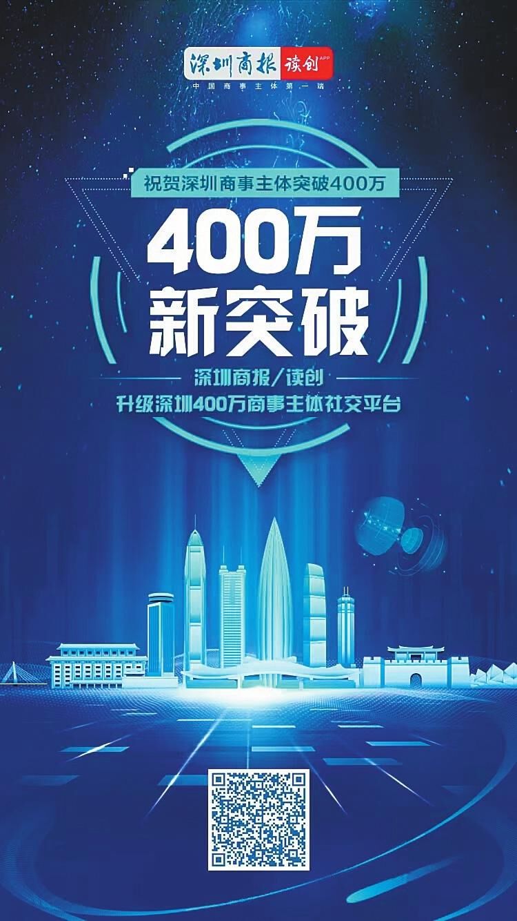 4月1日,随着深圳市商事主体突破400万户,深圳商报旗下的读创客户端也正式由“深圳300万商事主体社交平台”升级为“深圳400万商事主体社交平台”。近期,读创将推出重磅产品——大数据开放平台,致力于为更多的商事主体提供更为专业的财经报道、更为高效的企业服务、更为智能的数据挖掘。