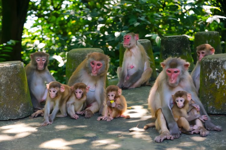 岛上野生动物种类也十分丰富,主要保护对象为国家二级野生保护动物——猕猴。因内伶仃岛为无居民海岛,人类活动对动植物栖息影响小,岛上高大的树木、海边的礁石、半山腰的山洞都成了猕猴栖身玩耍的好去处。且岛上食物丰富,有200多种猕猴能吃的食源植物,还有鸟蛋、昆虫、蚯蚓、蚂蚁等,猕猴种群得以再次繁衍生息。目前,内伶仃岛上约有23个猴群,1200多只猕猴,故内伶仃岛也被称为“猕猴王国”。