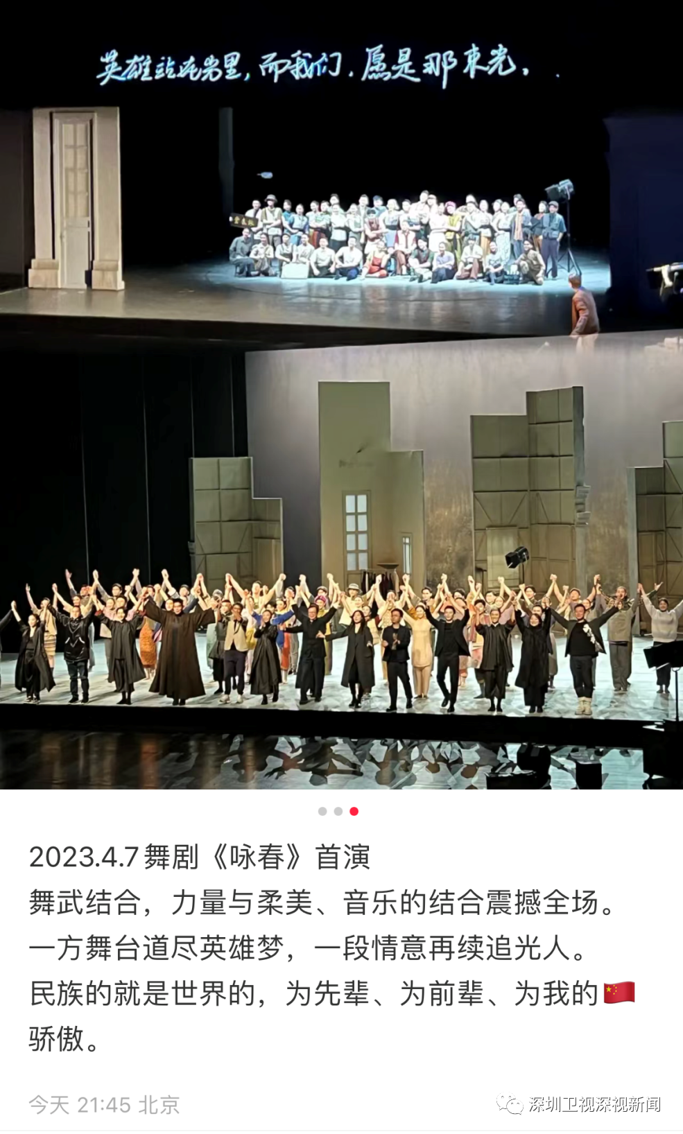 (原标题《5次返场!掌声雷动!深圳出品舞剧〈咏春〉惊艳国家大剧院》)