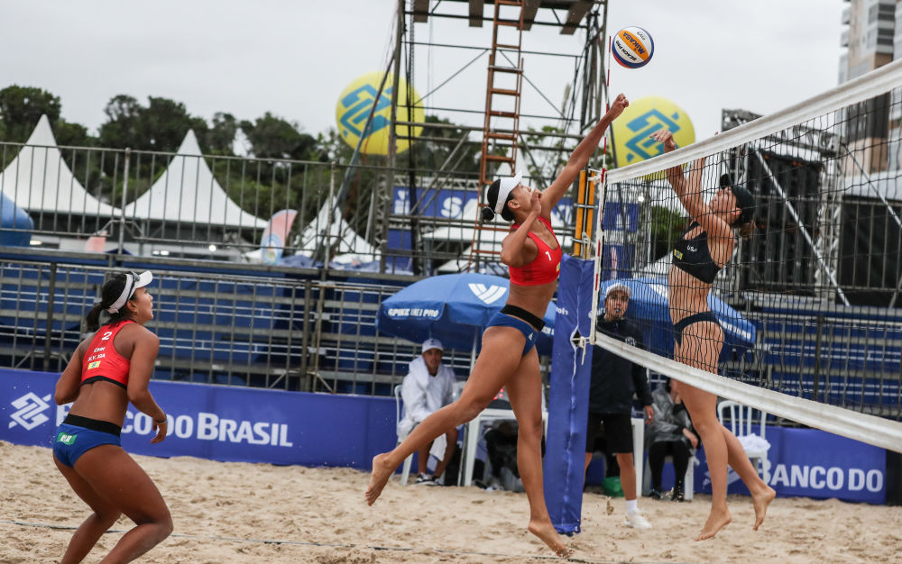 世界沙排巡回赛巴西伊塔佩马站比赛7日的比赛遭遇阴雨天,中国队王鑫鑫/朱玲娣和薛晨/夏欣怡晋级16强。