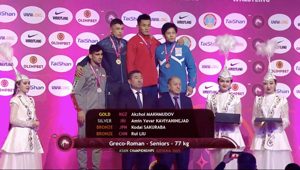 伊朗队成为当日比赛的最大赢家,获得5个男子古典式公斤级项目中的4枚金牌,展现出强大实力。吉尔吉斯斯坦摔跤名将、东京奥运会银牌得主马哈茂多夫获得男子古典式摔跤77公斤级金牌。