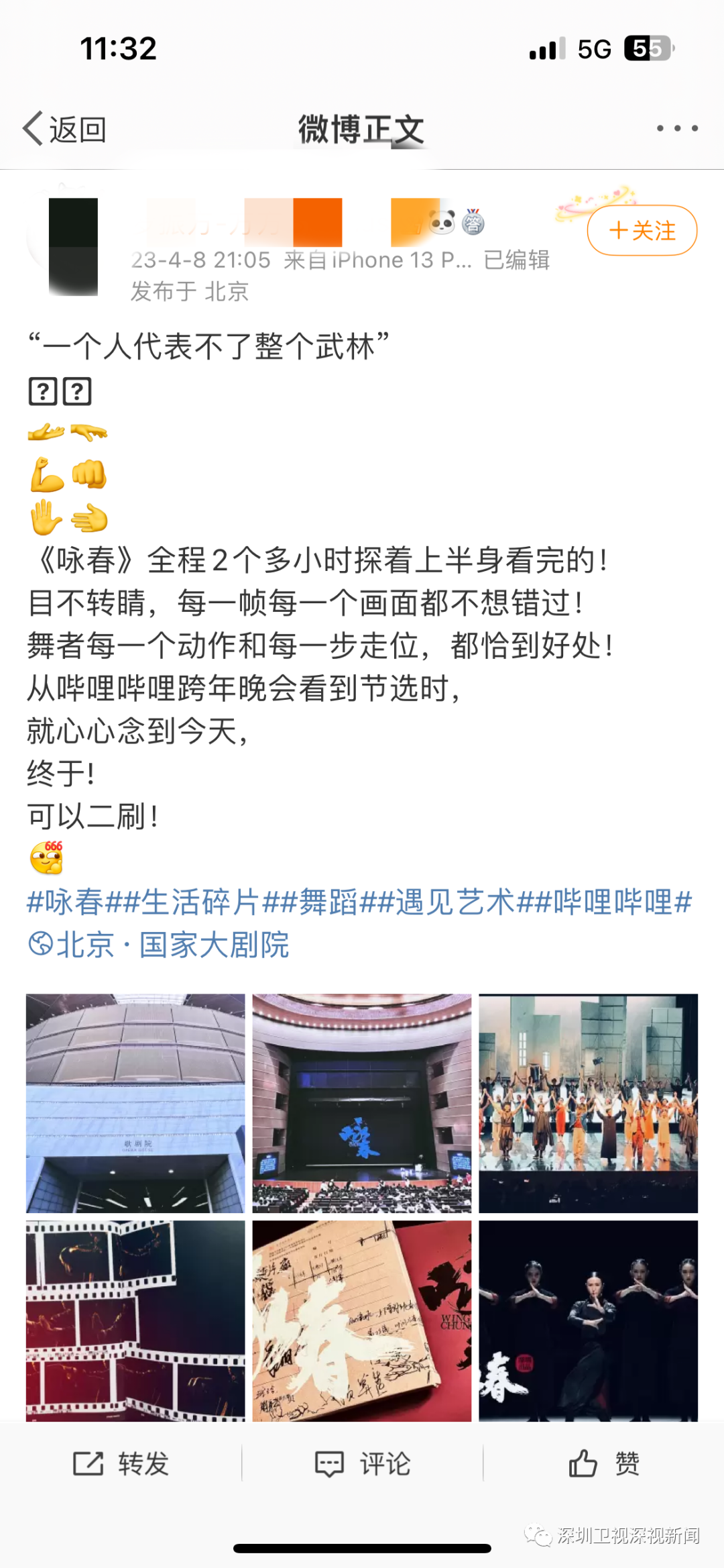 用心观剧、用心repo。实际上,网络传播正是舞剧《咏春》此次实现“破圈”传播的重要渠道和手段之一。