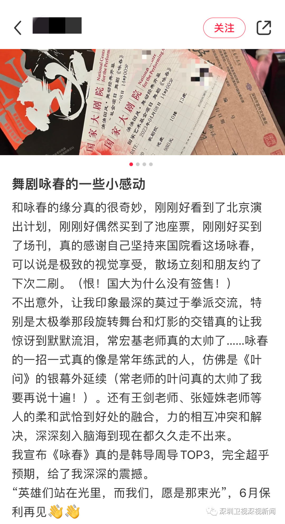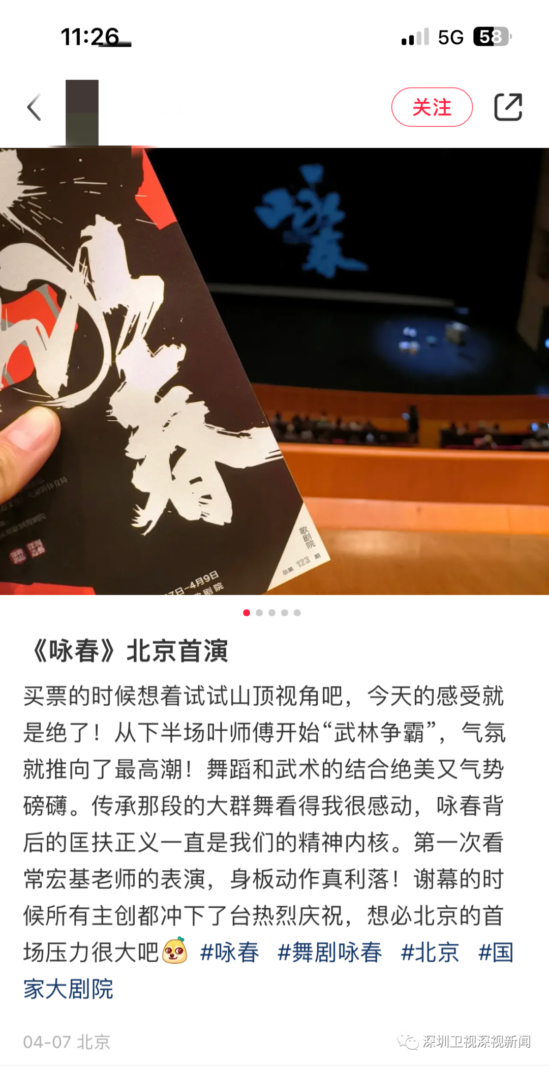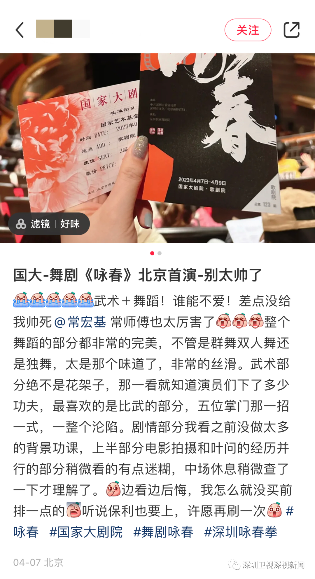 《咏春》带着浓浓的岭南风味吹暖了北京的演艺市场,在收获业界不绝回响的同时,更在新浪微博、小红书等社交平台上,赢得了一篇篇真挚好评。