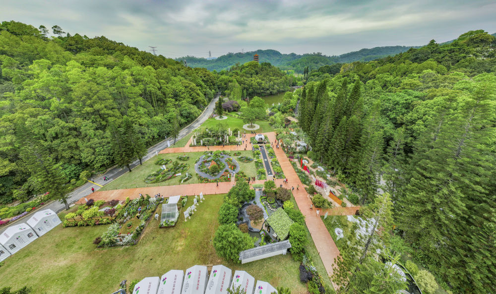 4月8日拍摄的2023粤港澳大湾区花展(无人机照片)。新华社发(钟子杰 摄)