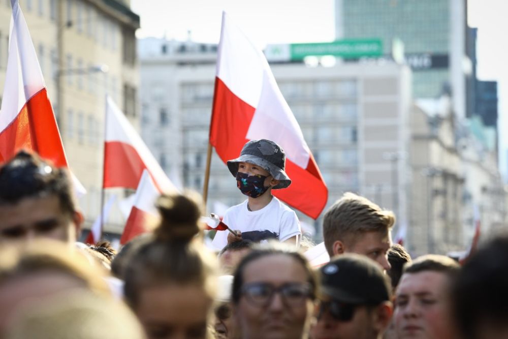 2021年8月1日,人们在波兰华沙参加纪念活动。新华社发(亚普·阿林摄)