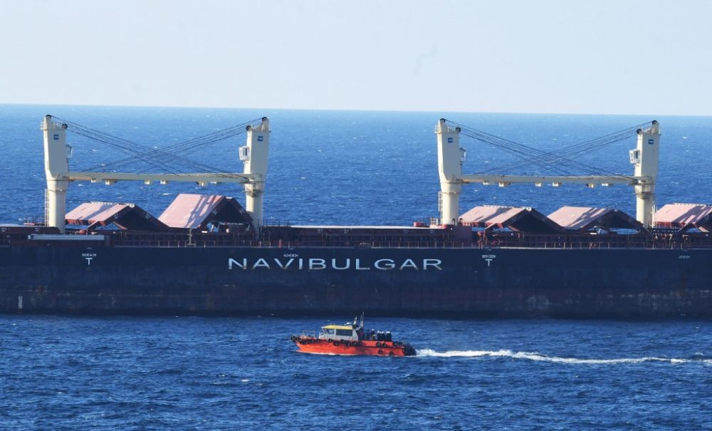 2022年8月6日,从乌克兰出发的第二批运粮船抵达土耳其伊斯坦布尔的博斯普鲁斯海峡黑海入海口附近。(新华社记者沙达提摄)
