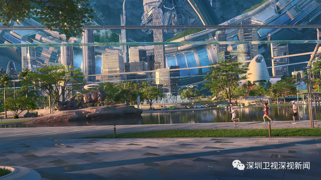 “这个镜头里的所有建筑,都是深圳未来的建筑。”邓博弘介绍,这里代表着深圳的“未来”,以深圳湾超级总部为基础,深圳未来的标志性建筑在这里得到了呈现。