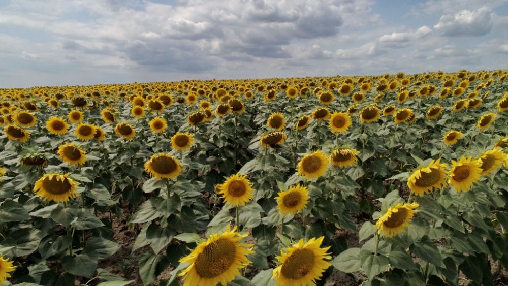 这是2019年7月9日在乌克兰南部敖德萨州拍摄的葵花田(无人机拍摄)。(新华社记者 陈俊锋 摄)