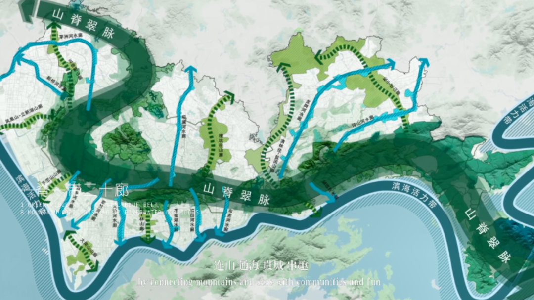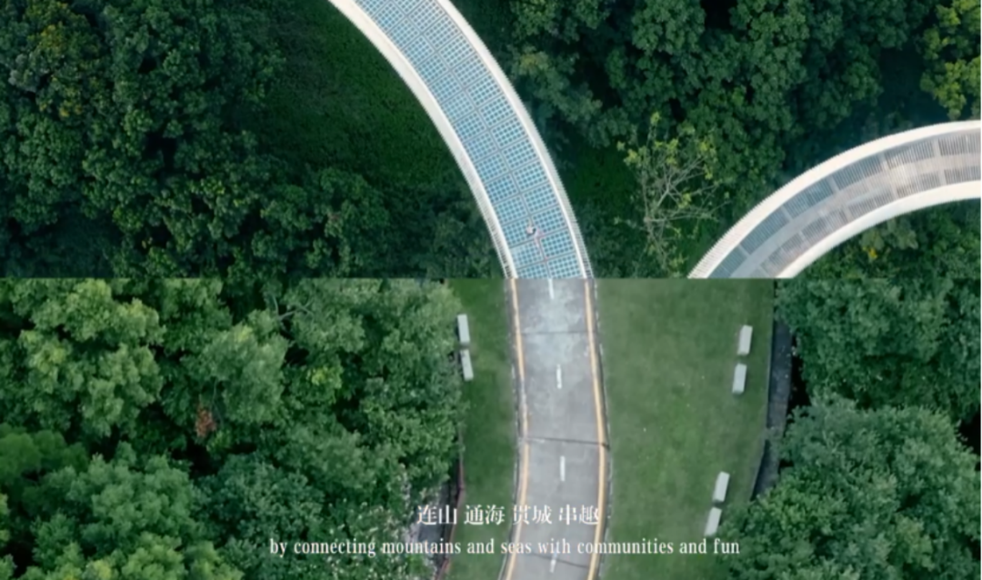 同样是在设计周发布的《山海连城》视觉短片里,深圳将要打造“一脊一带二十廊”生态骨架,让城市拥抱森林,用贯穿全城的山水绿廊,串联深圳每一处山脊与海岸。