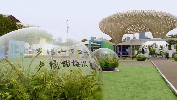 再走进展区,徒步在诗意文化绿道,这里设置了六个玻璃绿植圆球装饰,上面附着精心挑选的诗词,让市民在徒步中可以听山看海、读书观城,感受城市的风光美景。