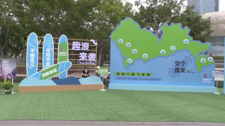 移步到露天广场,露营地围炉煮茶、天马行空咖啡馆,提供户外休憩空间,让人感受到生态与设计的共融氛围。来到“设计+体育”打卡点,以“一脊”延展出的画面定制飞盘在展示深圳丰富自然生态资源的同时,号召大家走向户外。除飞盘外,还有滑板、冲浪等户外活动,在城市中自由逐风造浪,展现出深圳完善的运动生态。