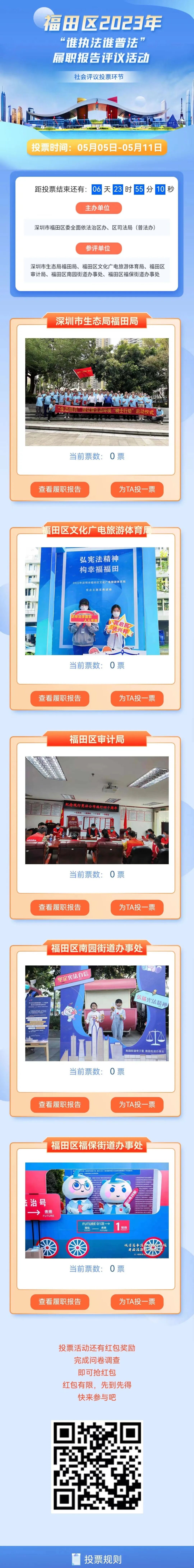 福田区委全面依法治区办结合福田区实际情况,制定了《福田区2023年国家机关“谁执法谁普法”履职报告评议活动工作方案》。