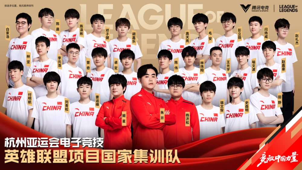 腾讯电竞5日公布了英雄联盟及和平精英(亚运版本)两个项目的杭州亚运会国家集训队名单,并表示王者荣耀(亚运版本)和FIFA Online 4项目的名单将于后续公布。