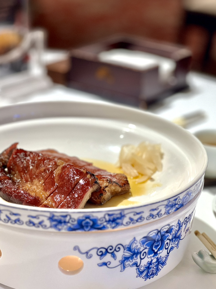 好吃又好玩的叉烧也值得尝试。厨师会推着小推车来到食客旁边,为大家现场烤制叉烧。一根铁签串起的肉块在厨师手中像被施了魔法一样,在几个翻转之间,与火焰共舞,再与蜂蜜相会,渐渐裹上一袭焦糖色的外衣,散发出迷人的香味,令人垂涎欲滴。