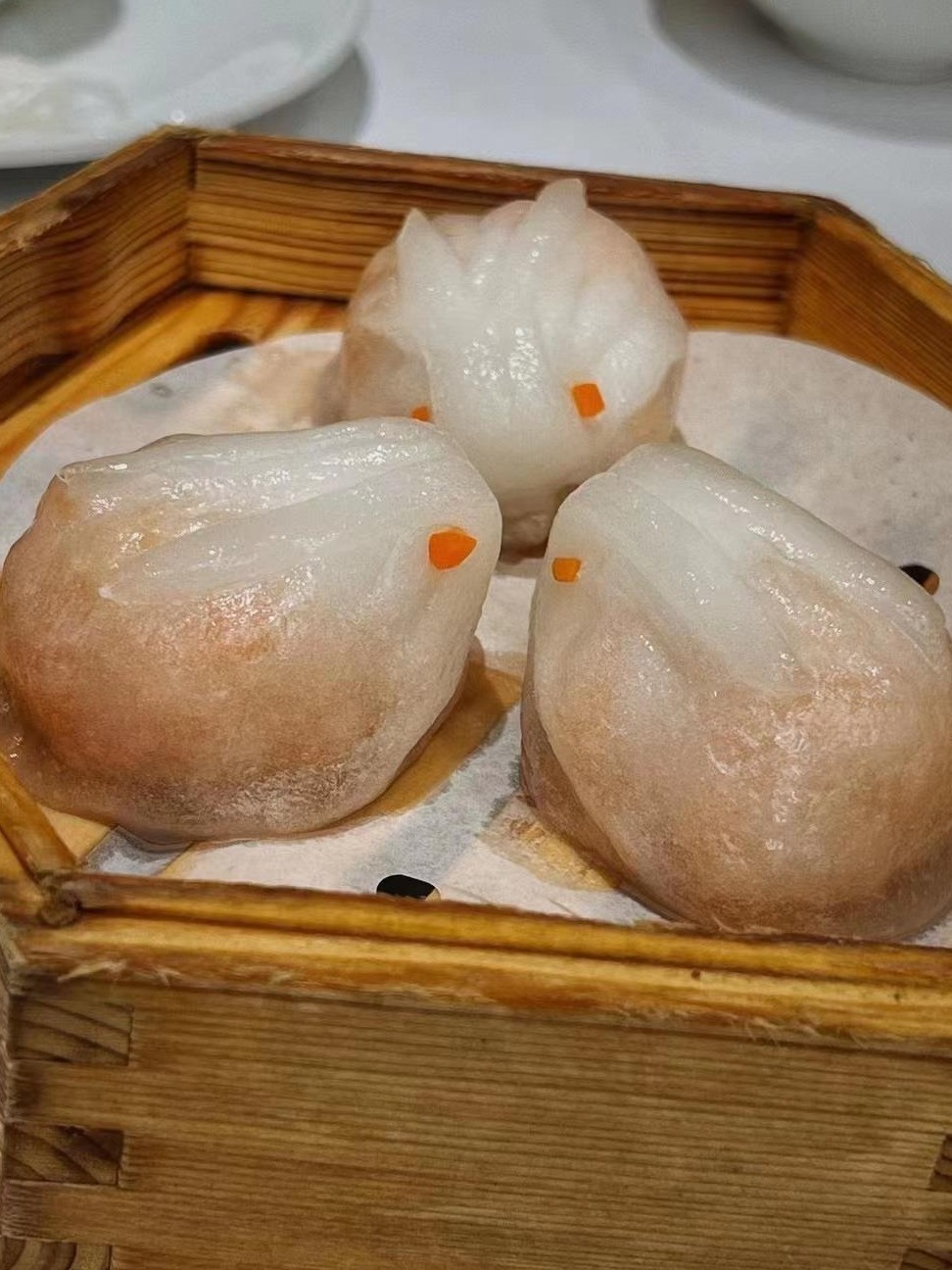 虾饺、鸡爪、牛仔骨等都是早茶中的明星产品,几乎家家都有,踩雷几率低,属于闭眼勾选的品类。甜点类就因人而异了,榴莲酥、叉烧酥、沙琪玛等都值得一试,特别是带着小朋友的家庭,肯定少不了为孩子点一份。