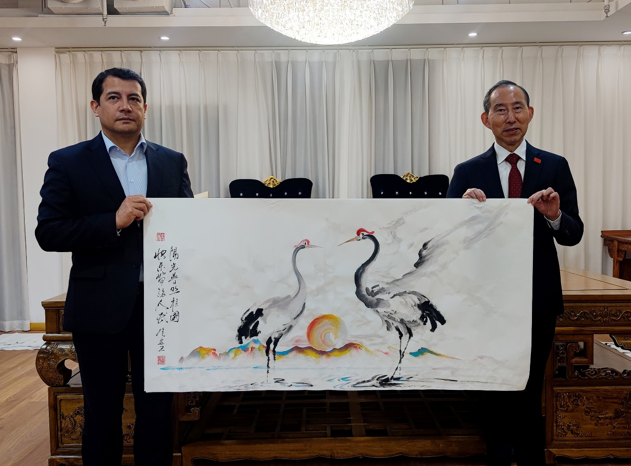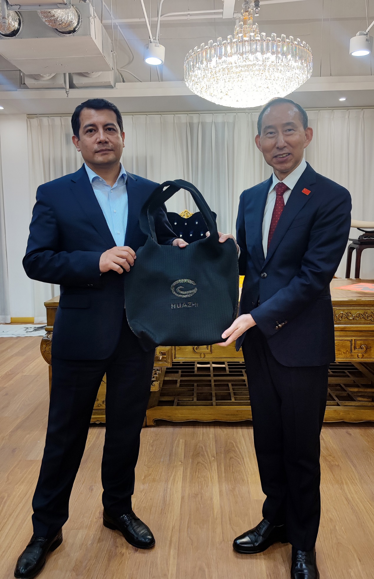 龙宇翔对法尔霍德•阿尔济耶夫大使的到访表示热烈欢迎。他说,中乌友好交往源远流长,在两国元首的战略引领和亲自关心下,中乌关系迈入了全面战略伙伴关系新时代。中国国际文化传播中心长期致力于国际人文交流,与联合国、联合国教科文组织等国际组织和世界上160多个国家和地区进行了友好往来,先后在联合国、联合国教科文组织、俄罗斯、法国、德国、西班牙、芬兰、瑞典、印度、巴林、摩洛哥、莫桑比克、泰国、新加坡、马来西亚等国家举办“水墨聚焦”书画艺术展、“和谐之声”文艺演出、可持续发展国际论坛和国际小姐世界大会、全球城市小姐大会、中俄国际舞会、“一带一路”国际时尚周等具有重大影响的国际交流活动,以及与美国、俄罗斯、法国、德国、巴基斯坦等多个国家的文化年纪念活动,促进不同文明的交流互鉴,加深中国与世界各国人民的友谊。乌兹别克斯坦是丝绸之路上的文明古国,拥有悠久的历史和灿烂的文化,中国国际文化传播中心高度重视与乌兹别克斯坦在人文、体育、高科技与经贸等领域的交流合作,将持续与乌兹别克斯坦驻华大使馆保持沟通联系,深入落实两国元首达成的共识,传承中乌友好合作优良传统,全力推动深化并拓展中乌各领域合作,为中乌关系持续健康稳定发展作出新的贡献。