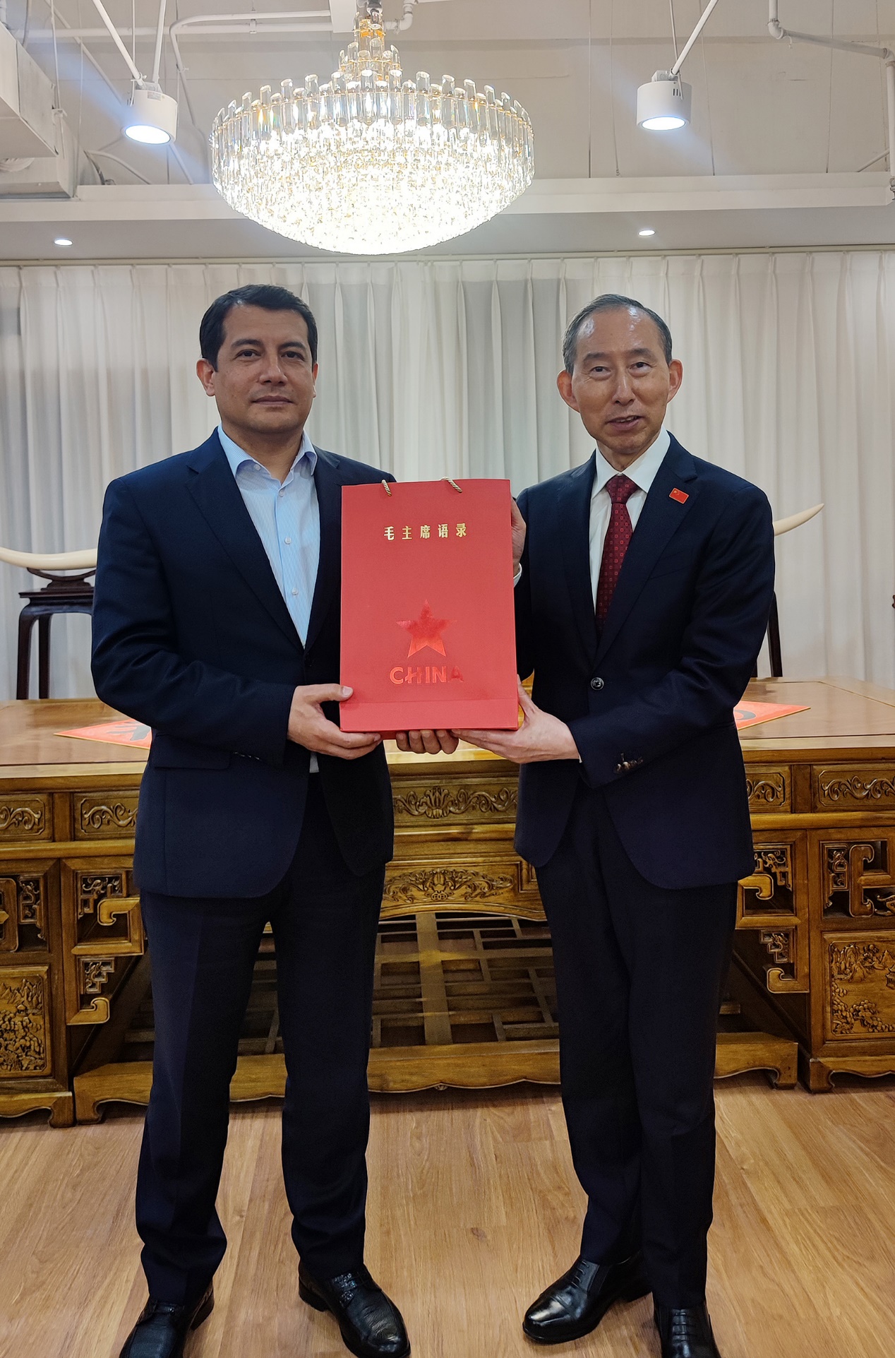 5月6日,中国国际文化传播中心执行主席龙宇翔与乌兹别克斯坦驻华大使法尔霍德•阿尔济耶夫在北京亲切会见,就中国国际文化传播中心与乌兹别克斯坦在人文、体育、高科技与经贸领域的交流合作进行深入会谈。