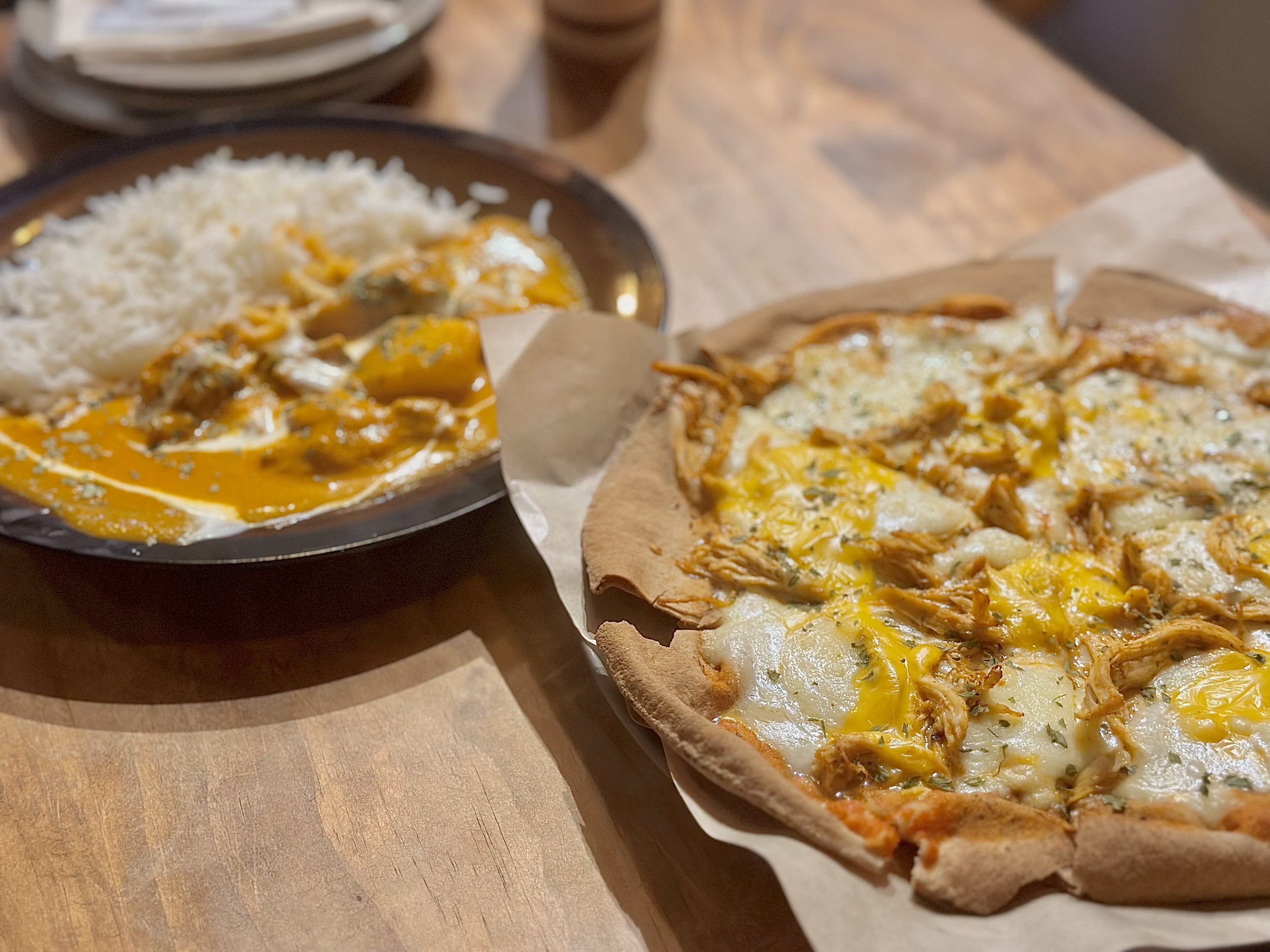 主食推荐印度特色黄油鸡配巴斯马蒂香米,巴斯马蒂香米是印度的一种米,形状细长,米饭较松散,淋上特色印度咖喱,两者捞在一起吃,香辣开胃。