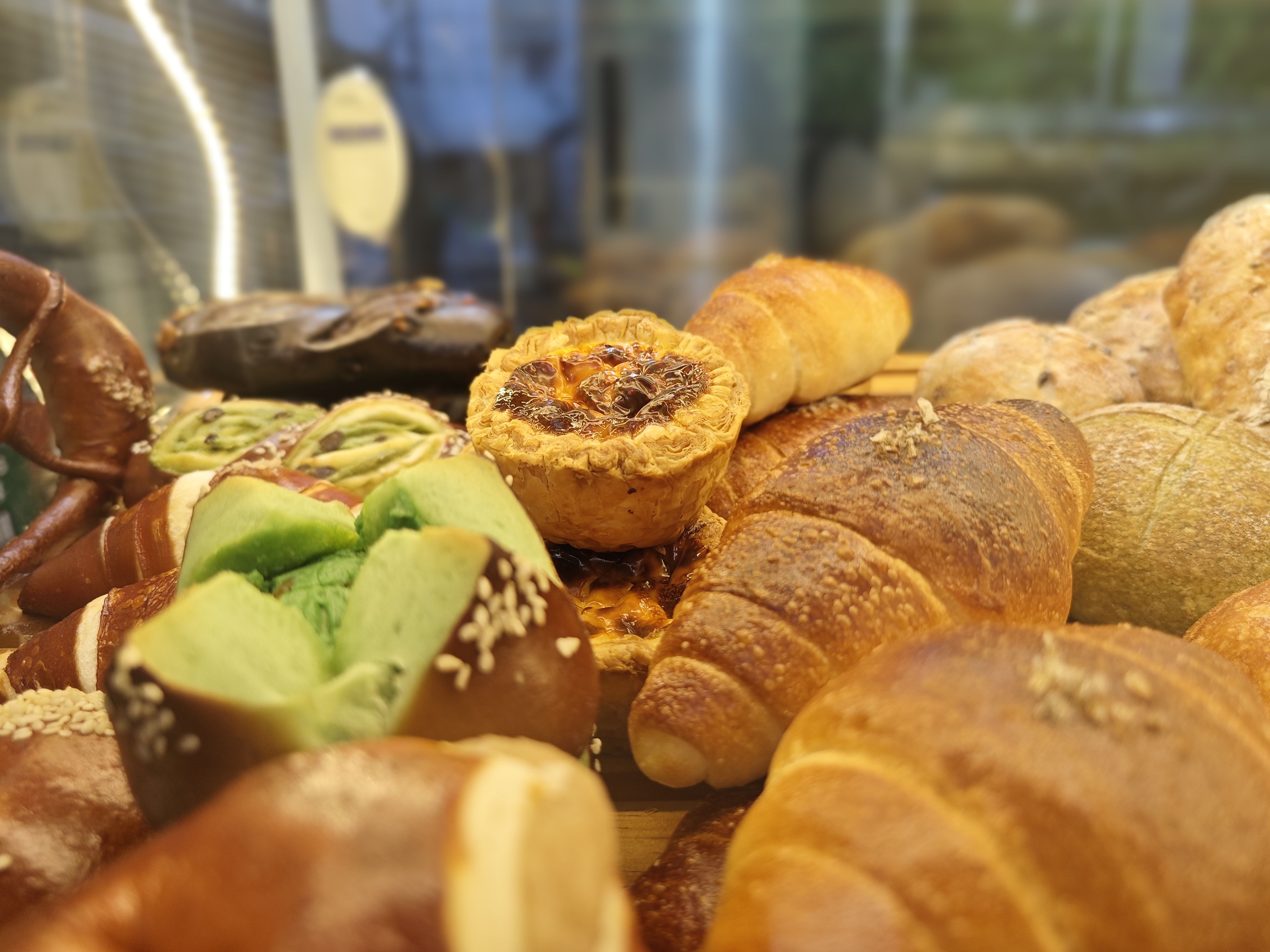 橱窗里堆着满满的面包,在选购时有点眼花缭乱,服务生小哥哥会温柔地介绍每款面包,“我们家招牌是贝果哦。”实在不知道选什么不如来个贝果吧,贝果入口松韧,内藏满满馅料,越嚼越香。
