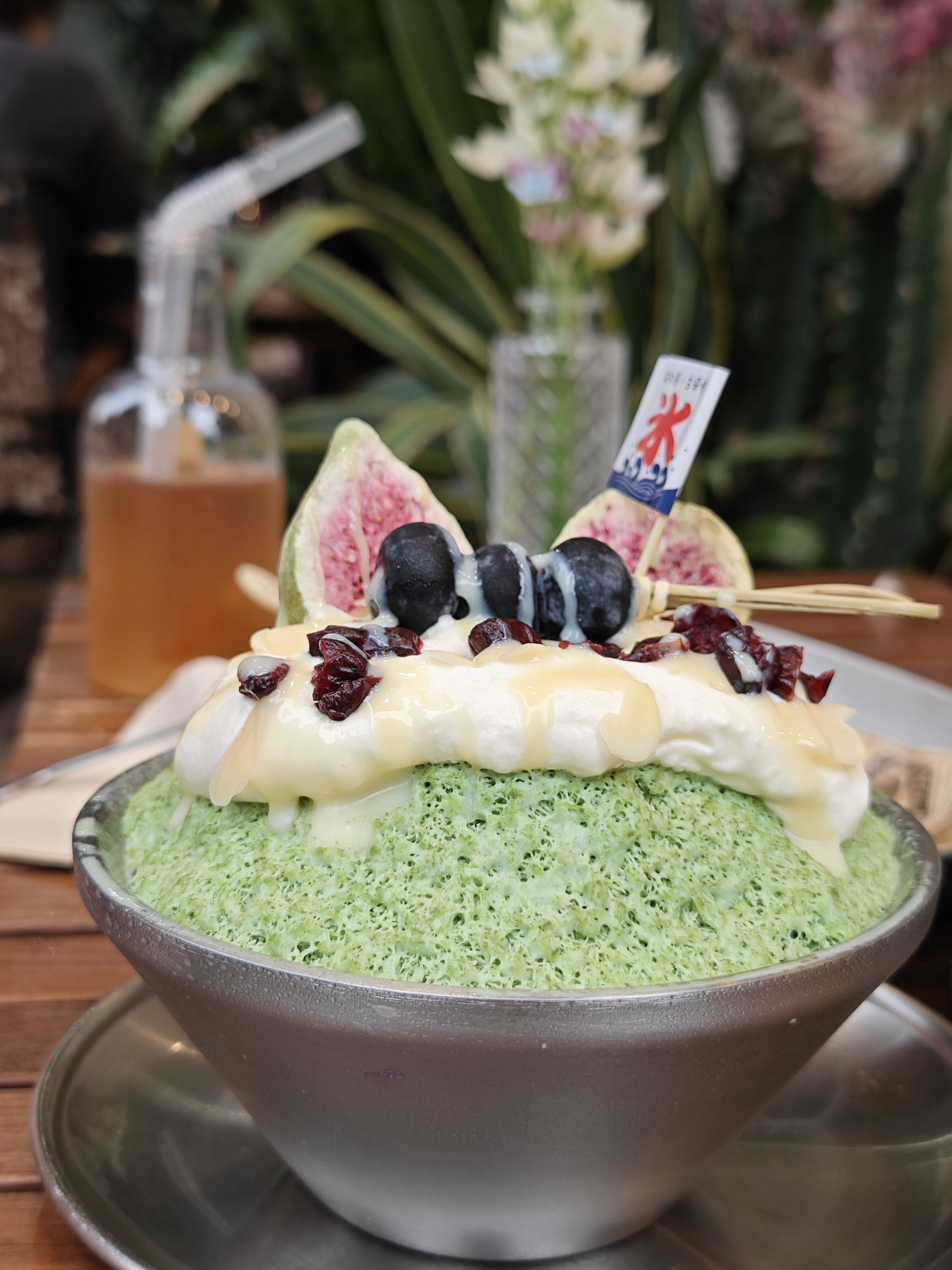 另一款值得一试的是海盐芝士抹茶冰,抹茶味的绵绵冰,顶部浇了厚厚一层海盐芝士。内馅丰富,有糯叽叽的丸子、甜滋滋的红豆和嘎嘣脆的薄片。