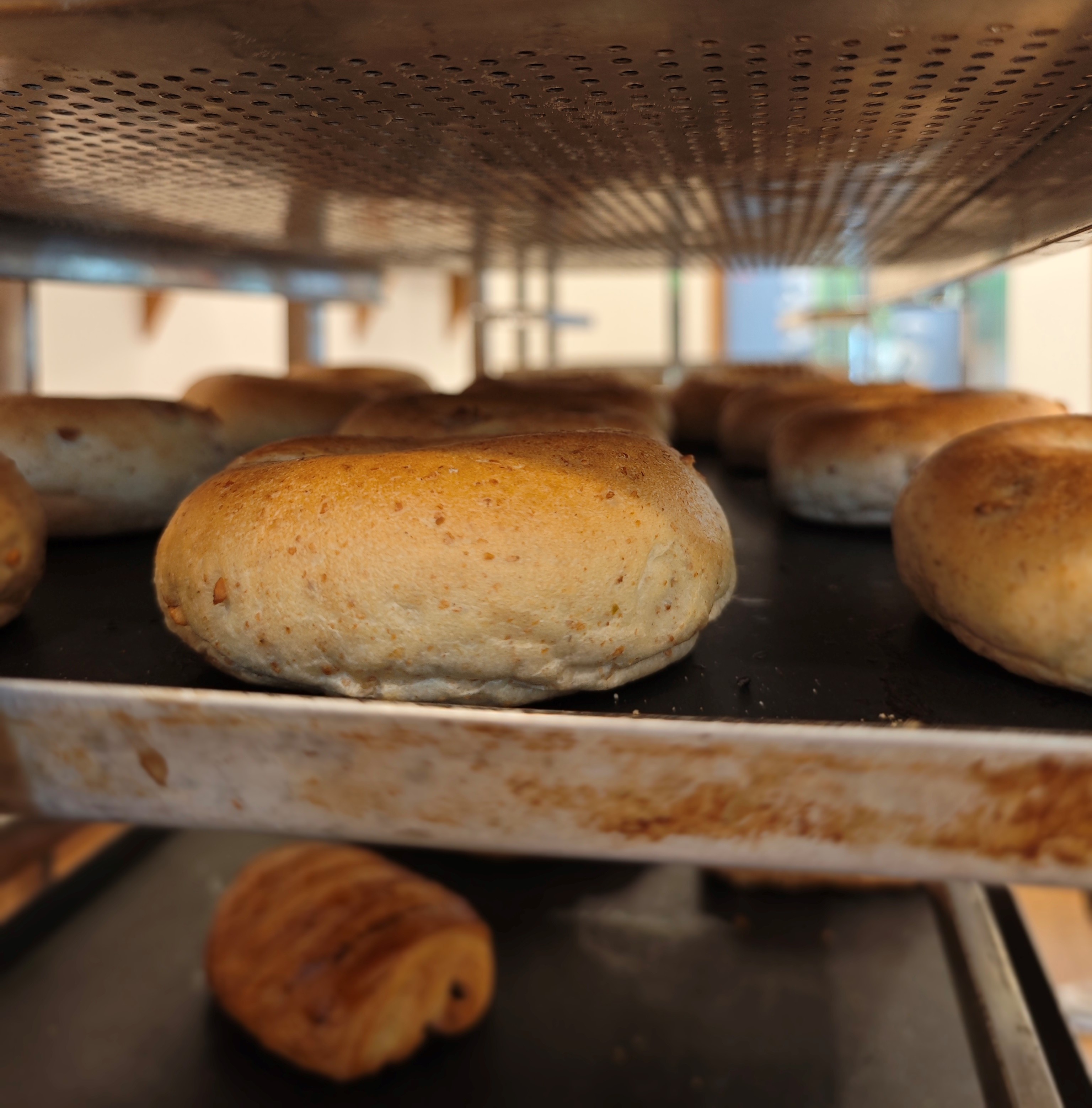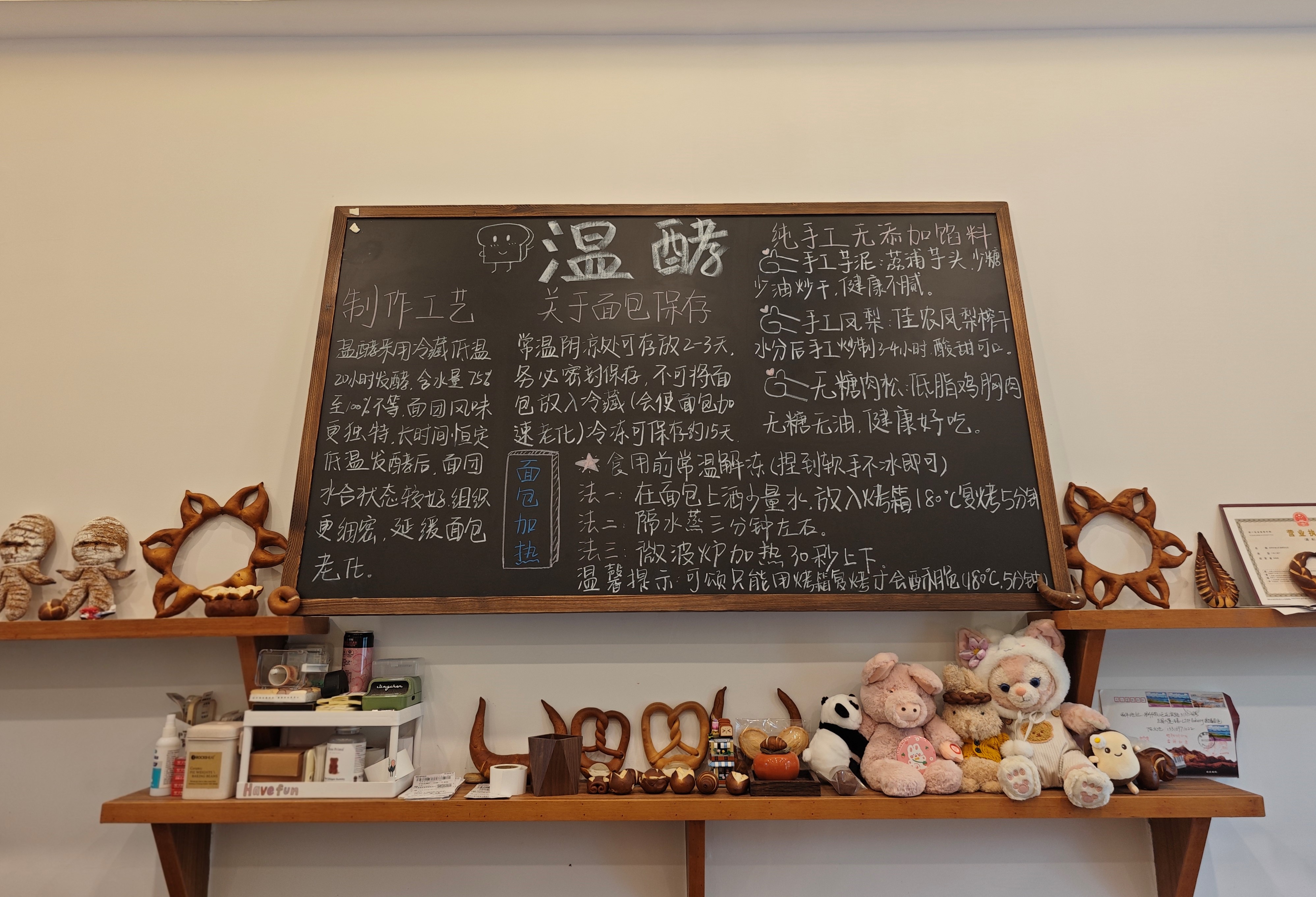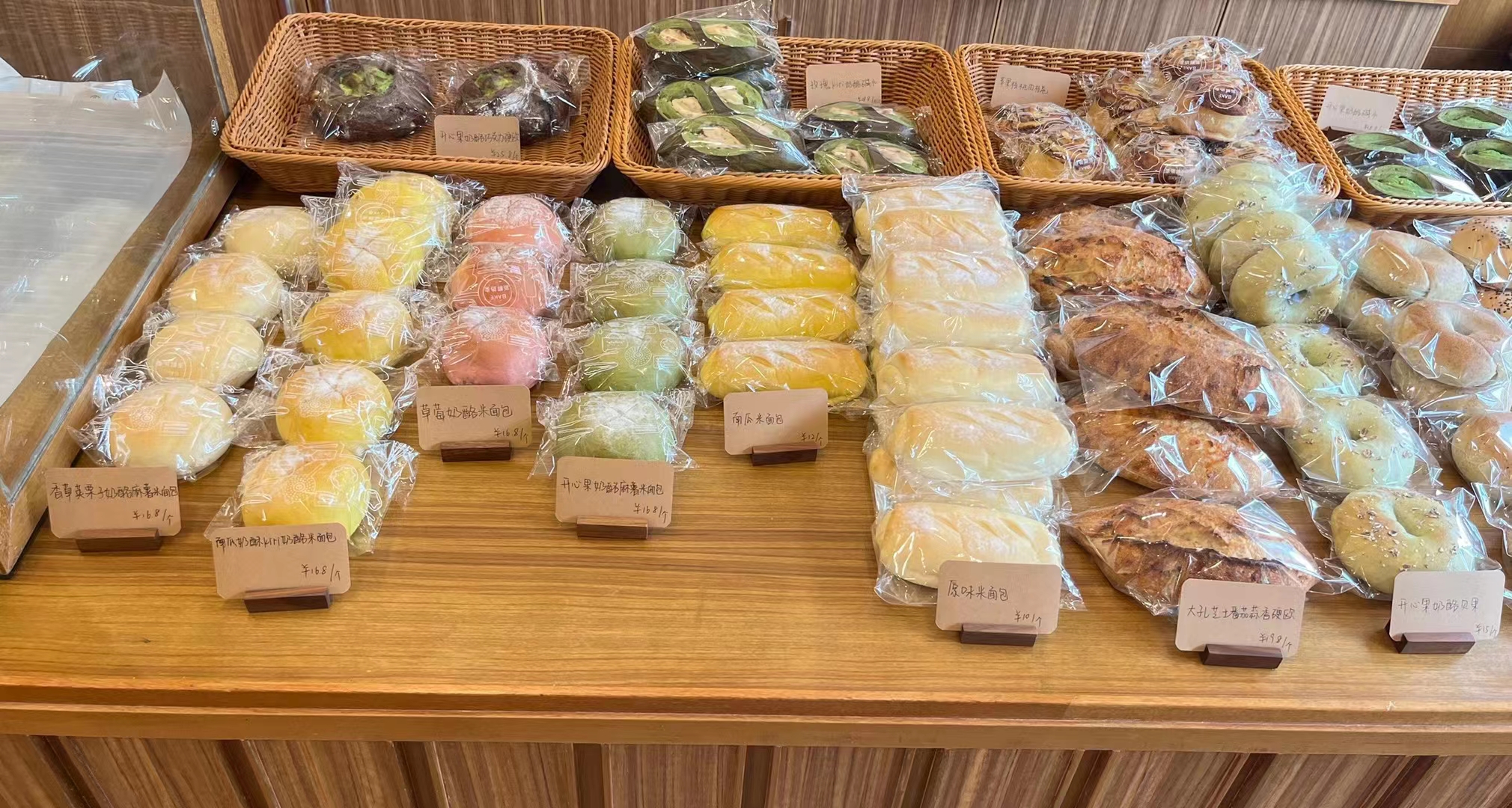 因店家也兼做线上订单,有时忙不过来,店里有些口味不齐全,为避免跑空,可提前询问预订。早上主要出炉的面包是贝果,两点半之后会有米面包,四点半后碱水系列面包出炉。