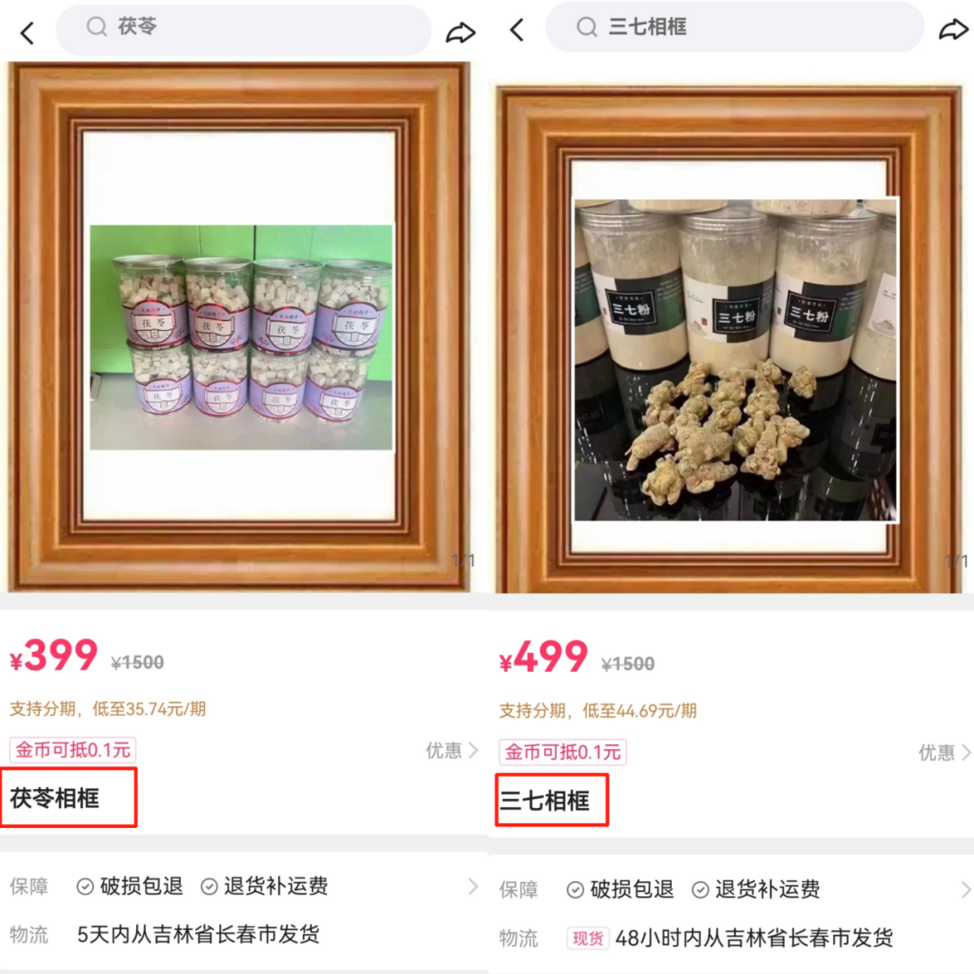 4月14日,记者发现,黄伟直播间里的“教授”所宣称的“药用价值极高”的茯苓,挂上链接后,商品名称变成了“茯苓相框”。直播中,有观众质疑为什么是相框,主播表示,写的是相框,实际是茯苓,“要不然上不了链接”。