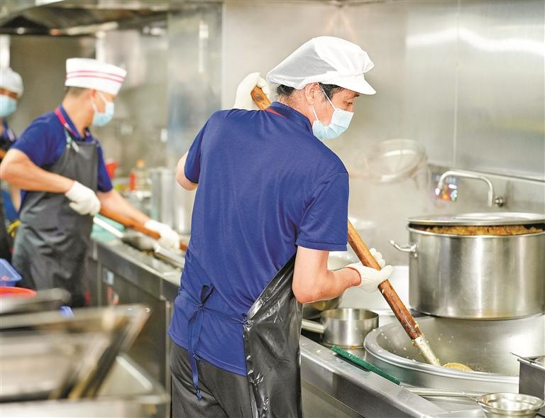 ▲罗湖教科院附属学校要求后厨工作人员统一着装。本版图片均由深圳晚报记者严文婷摄