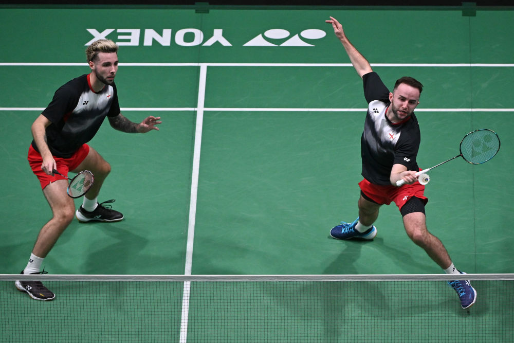 资料图:2023年1月11日,莱恩(右)/文迪在马来西亚羽毛球公开赛男双首轮比赛中。新华社发(张纹综摄)