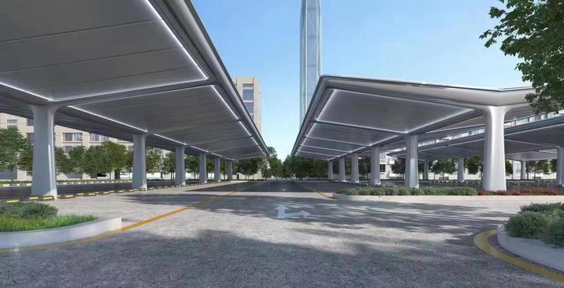 通过推进光伏建筑一体化建设,加快实施分布式光伏发电工程,探索构建新能源微电网,充分利用建筑屋顶、建筑立面、道路、空中连廊、开放空间等空间元素开展建设,把创新科技融入绿色建筑。其中,会发电的艺术天空花园、风雨连廊、露天车棚“光储充”一体化方式等设计,体现设计美观性与协调性的同时,实现地面“双绿融合”。