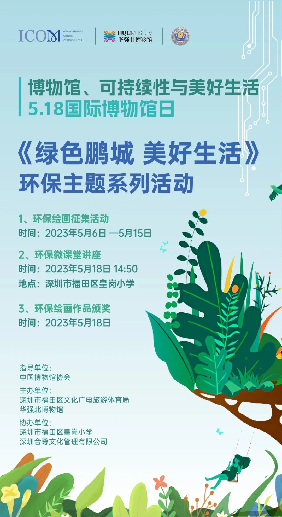 福田区华强北博物馆将在国际博物馆日期间举行《绿色鹏城 美好生活》环保主题系列活动,包括环保绘画征集、环保微课堂讲座和环保绘画作品颁奖。环保微课堂是华强北博物馆与皇岗小学的馆校共建项目,将向青少年传播“可持续性”发展的理念。
