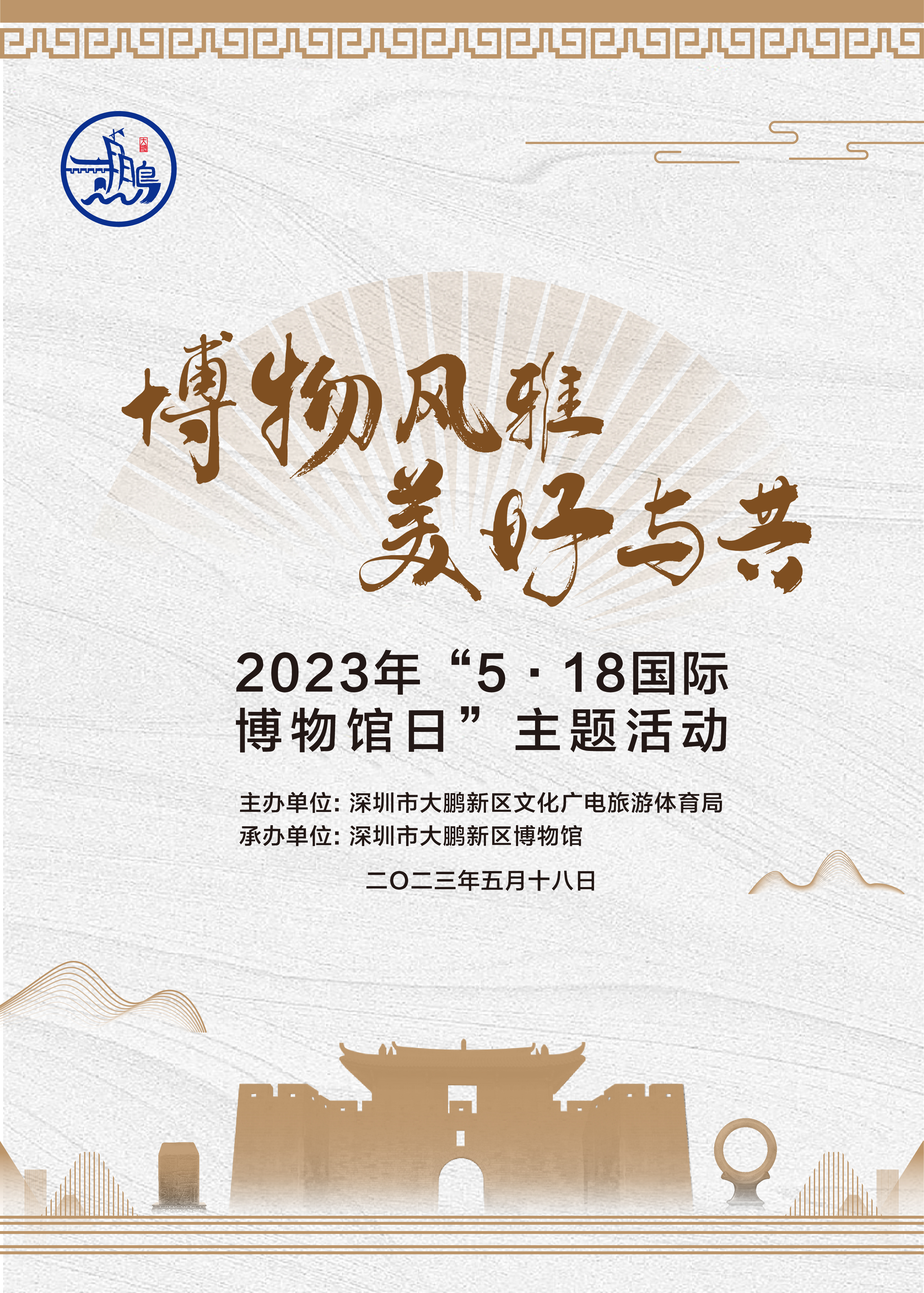 为了加深公众对博物馆的了解与认同,充分发挥博物馆的社会教育功能,传播传承优秀传统文化,活跃人民群众精神文化生活,让更多的人走进博物馆、了解民族文化。由大鹏新区文化广电旅游体育局主办,深圳市文化遗产保护中心和深圳市大鹏新区博物馆承办的2023年“5·18国际博物馆日”主题活动将在大鹏所城城隍庙遗址拉开序幕。活动内容包括大鹏所城文物建筑数字化展示、《心闲天地宽——宋朝文人的美好生活》讲座、藏品捐赠、“盛世收藏”公益文物鉴定。