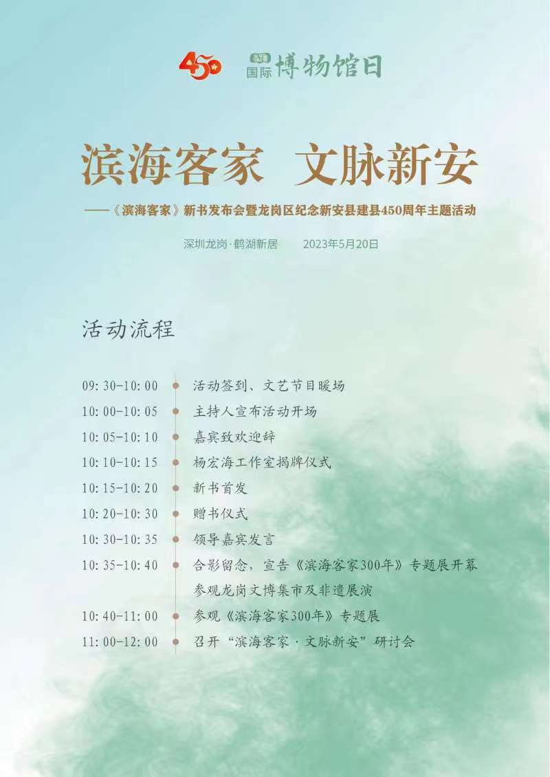 值此新安县建县450周年、深圳客家人迁徙300多年之际,适逢“518国际博物馆日”,龙岗区文化广电旅游体育局携区相关部门联合举办5.18国际博物馆日《滨海客家》新书发布暨龙岗区纪念新安县建县450周年主题活动。