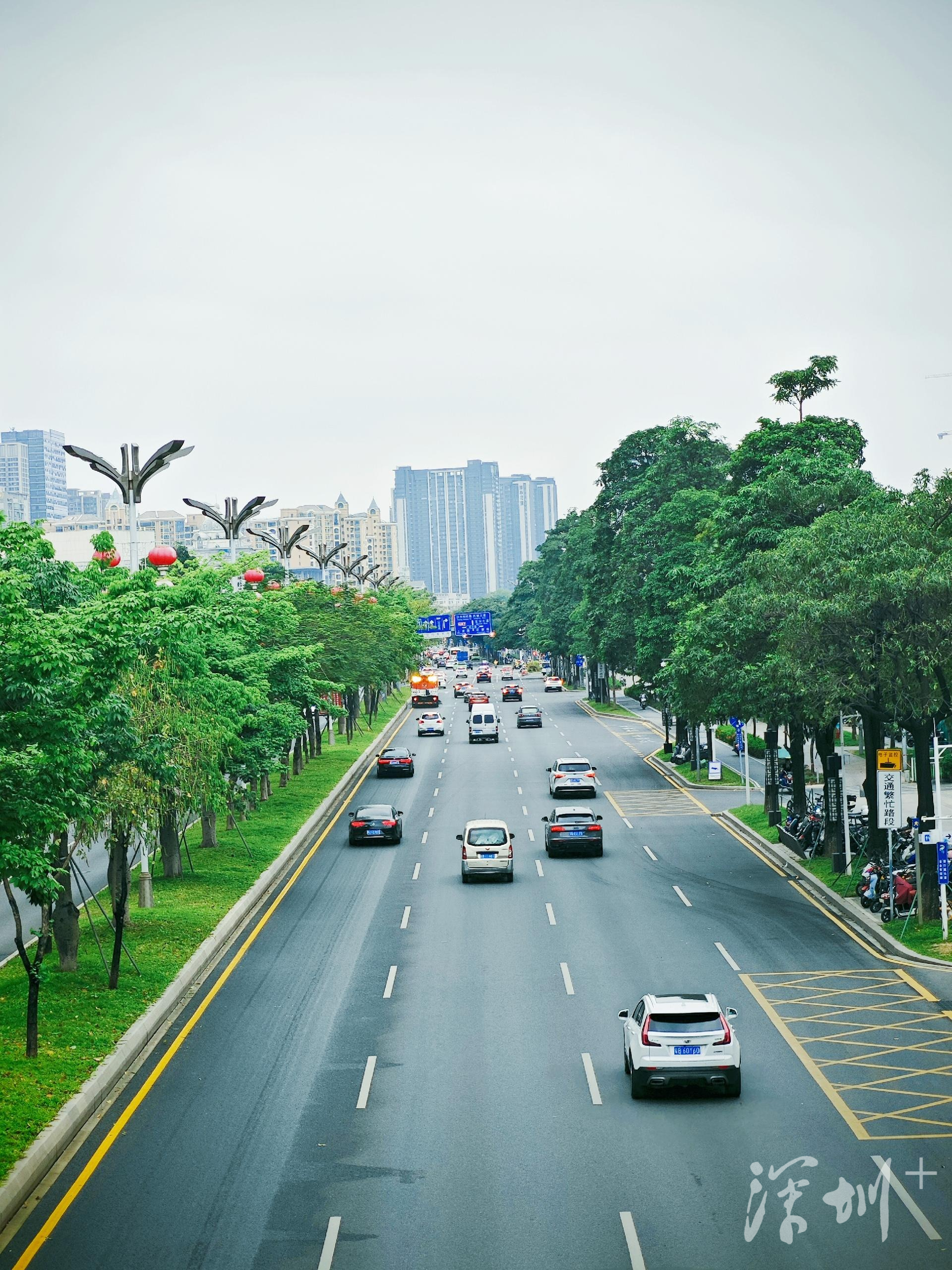 中心路,是新桥最繁忙的交通主干道,也是一道高颜值的风景线。站在人行天桥上眺望,平坦宽阔的道路笔直延展,两旁绿树繁茂,绿意灵动,车流与人流各畅其行,井然又清爽。