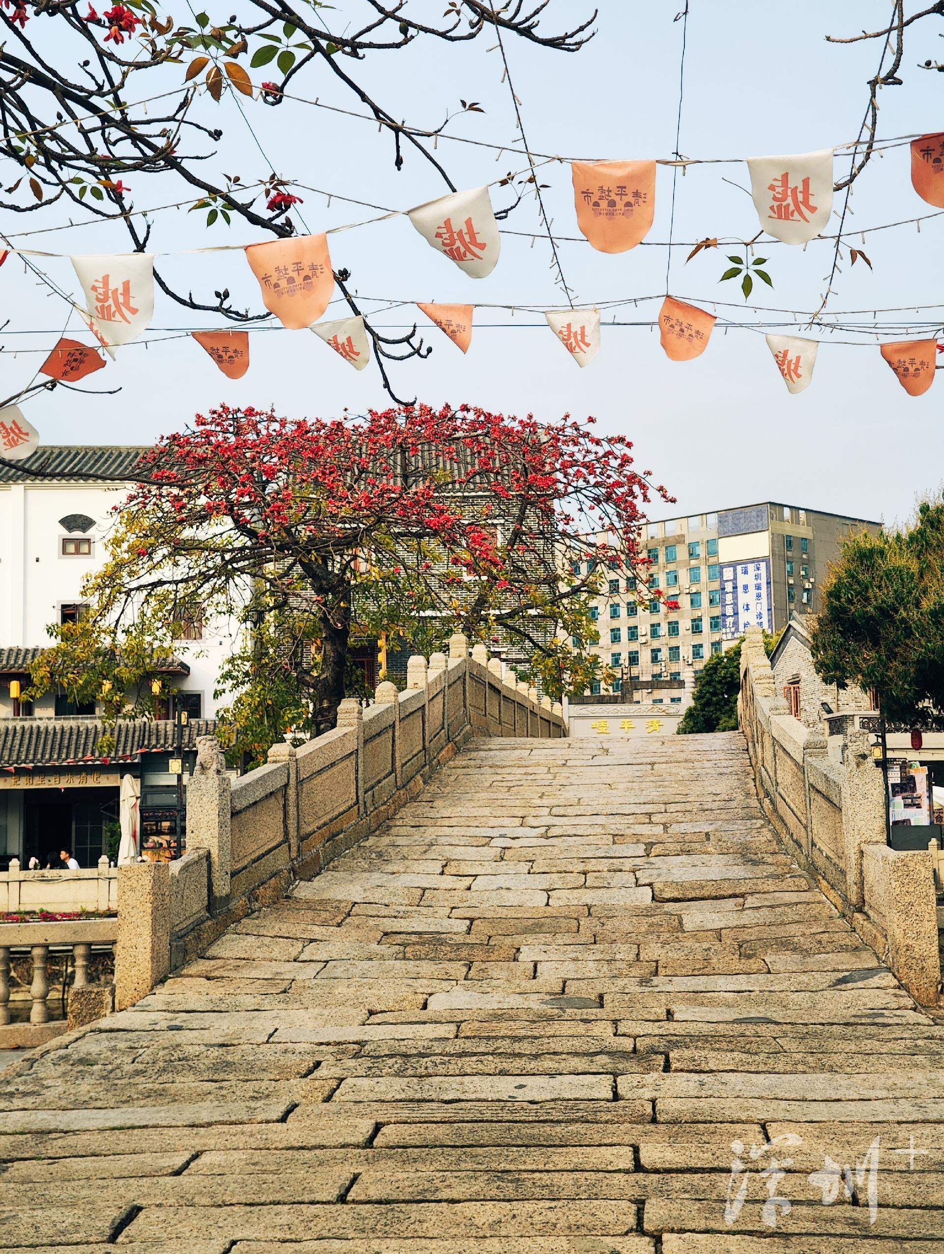深圳唯一一座三孔石拱桥——永兴桥,深圳现存的唯一当铺旧址——广安当铺,见证近现代史的新桥粮仓和碉楼……即使如今清平古墟正逐渐蜕变成影视基地,厚重的历史依旧凝聚于此。