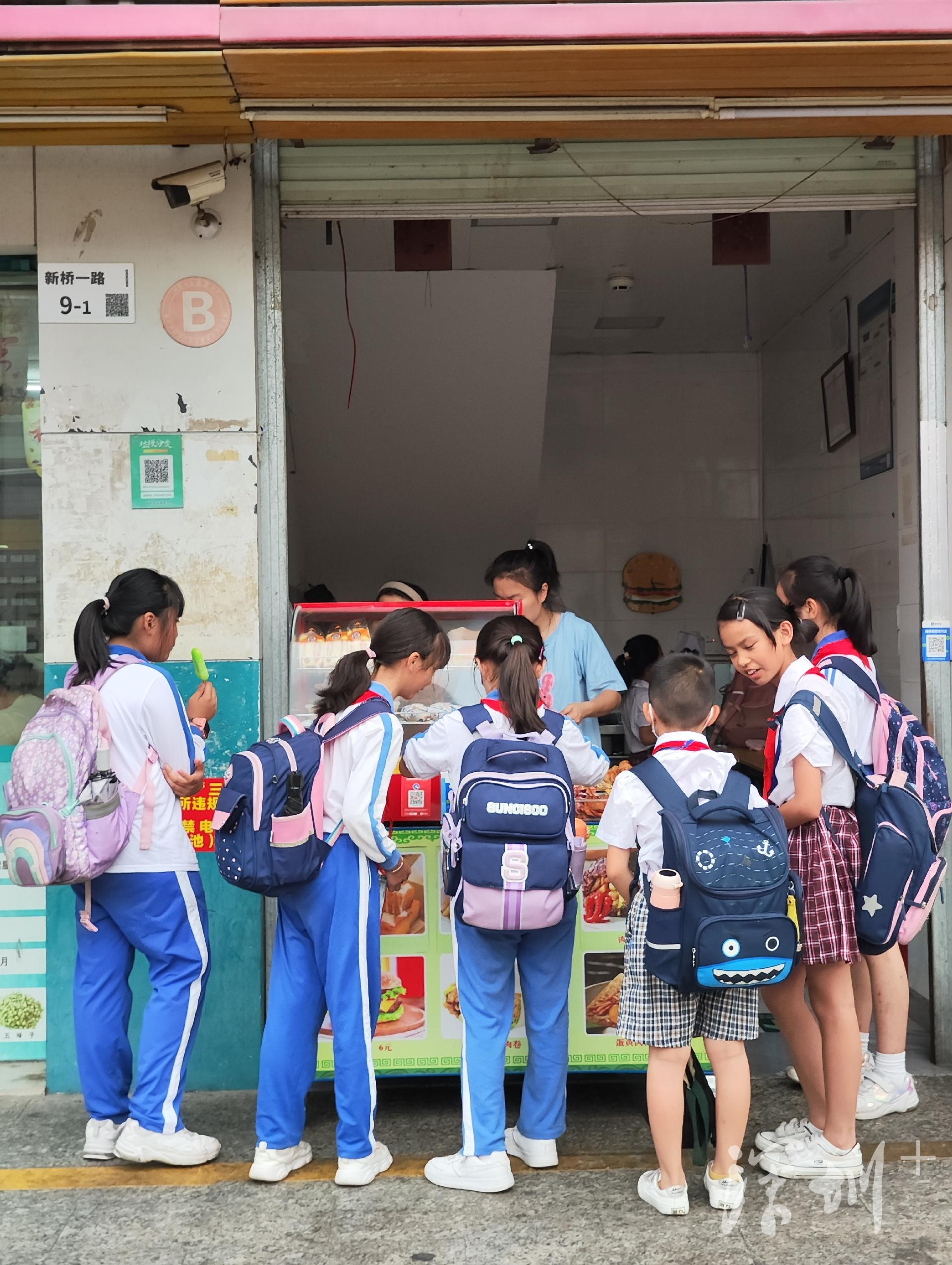 村里的新桥小学,放学时段,附近的小吃店总挤满了学生。