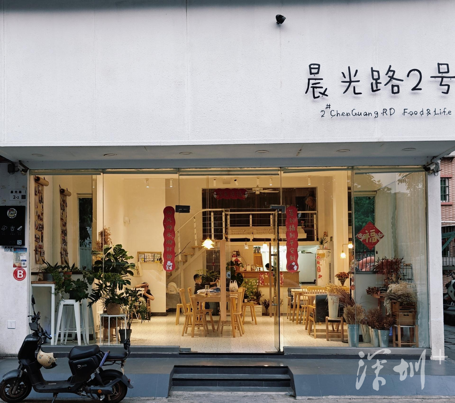 除了丰富的快餐店外,这里也有以清新文艺画风“出圈”的网红简餐店——晨光路2号。