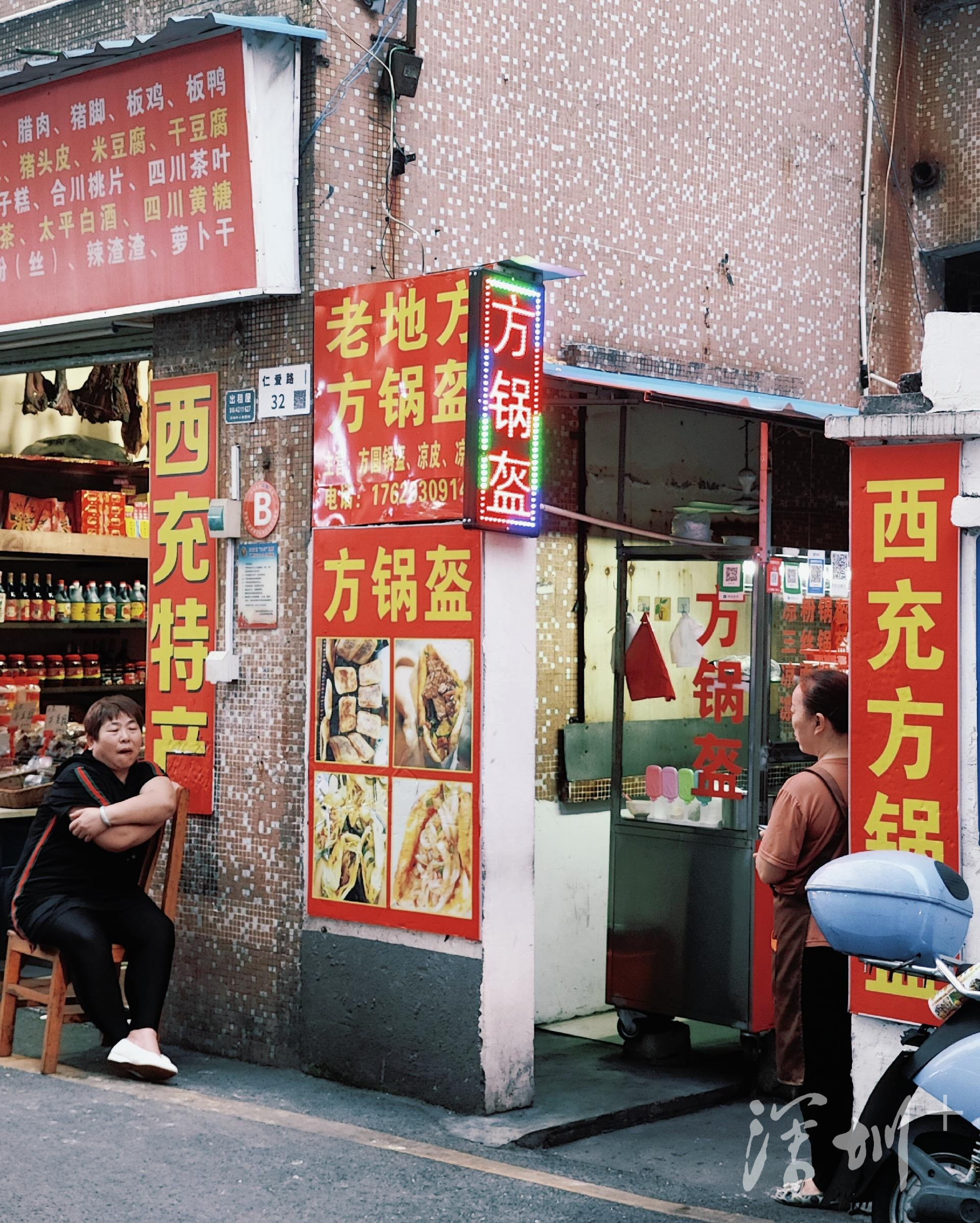 在等待锅盔出锅时,还能去隔壁店里逛逛西充特产。