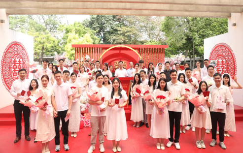 一对对新人喜笑颜开