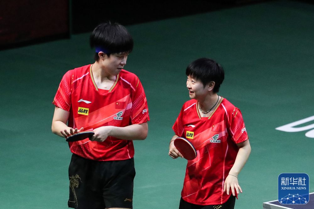 5月24日,王楚钦(左)/孙颖莎在比赛后。新华社记者 韩旭 摄