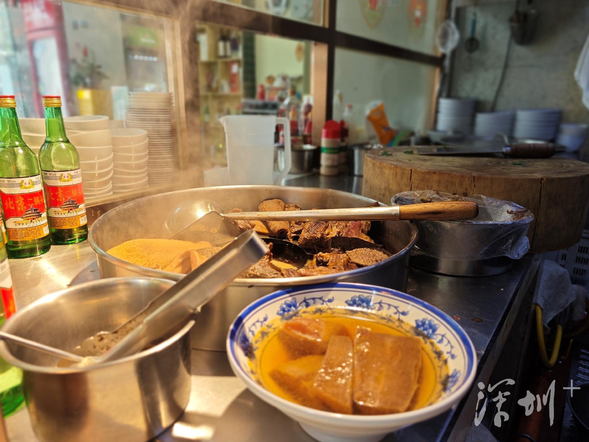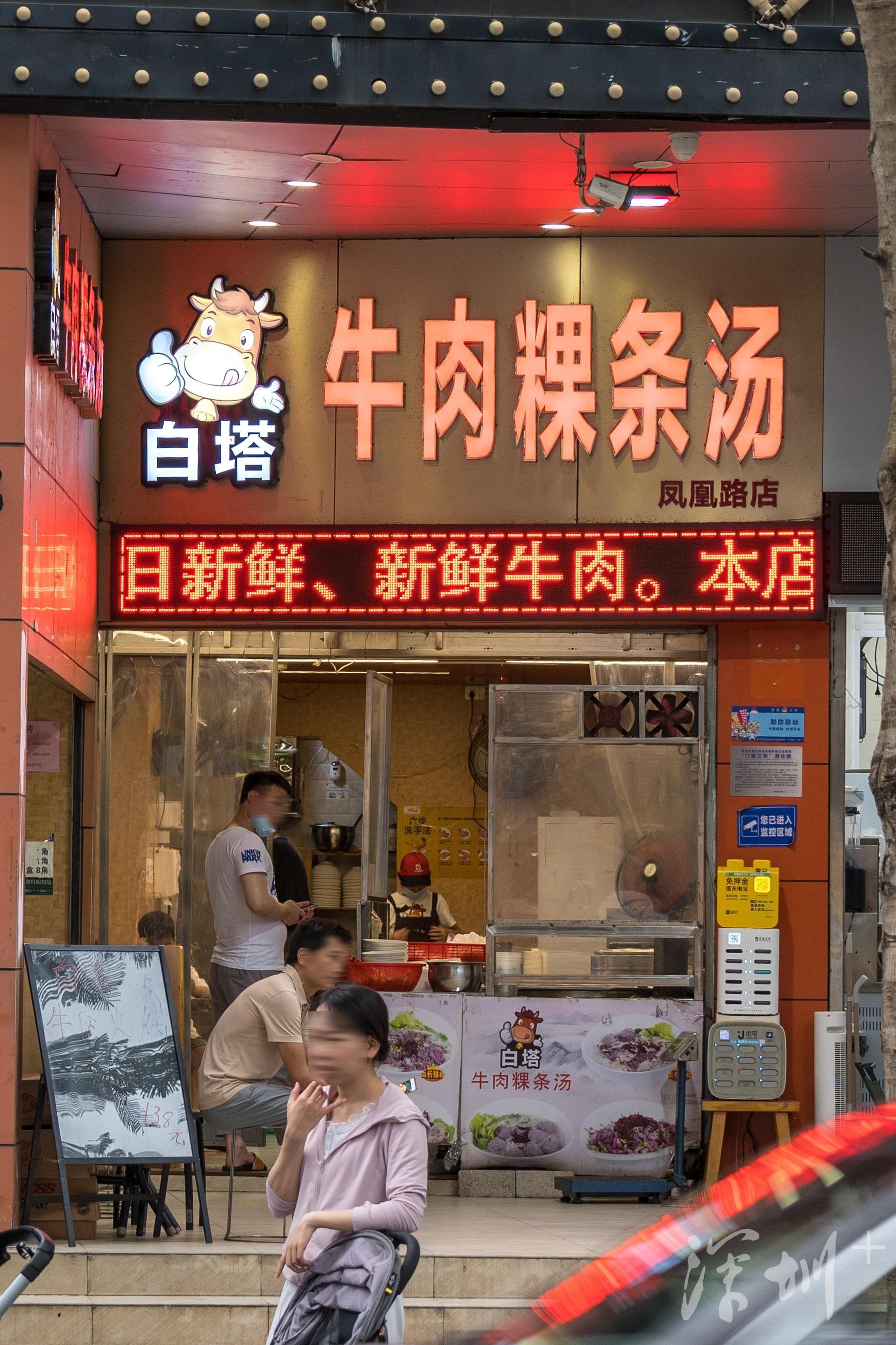 在新发茶餐厅右边,这家普普通通的白塔牛肉粿条汤店缩在街角。虽不似新发茶餐厅那样富丽堂皇,店内传出的袅袅炊烟,也缓了来去匆匆的步伐,喂饱了饥肠辘辘的胃。