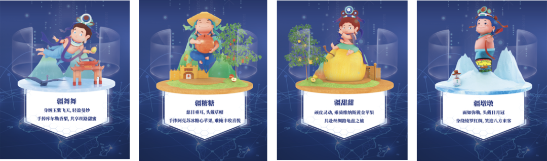 对传统文化的传承不单是对物质的传承,更是对精神和理念的继承。文化创意产业须以传统为根基的同时面向未来,结合当下人们的物质与精神需求,才能散发出蓬勃的生命力。为此,研究院深入龟兹石窟钻研龟兹文化,基于古丝绸之路的文化内涵,结合现代美学审美,全球首创龟兹文化的文创IP“龟兹宝宝”。