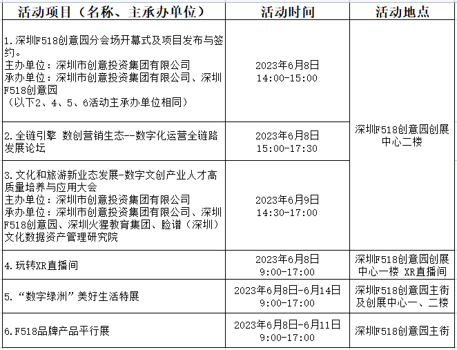 深圳F518创意园分会场位于宝安中心区的核心地带,由深圳市创意投资集团有限公司承办,现已成功举办了十四次文博会分会场。多年来,深圳F518创意园分会场一直以专业性、丰富性、互动性和创新性的活动内容促进产业发展、丰富市民精神文化生活,助力深圳文化创意产业的高质量发展。