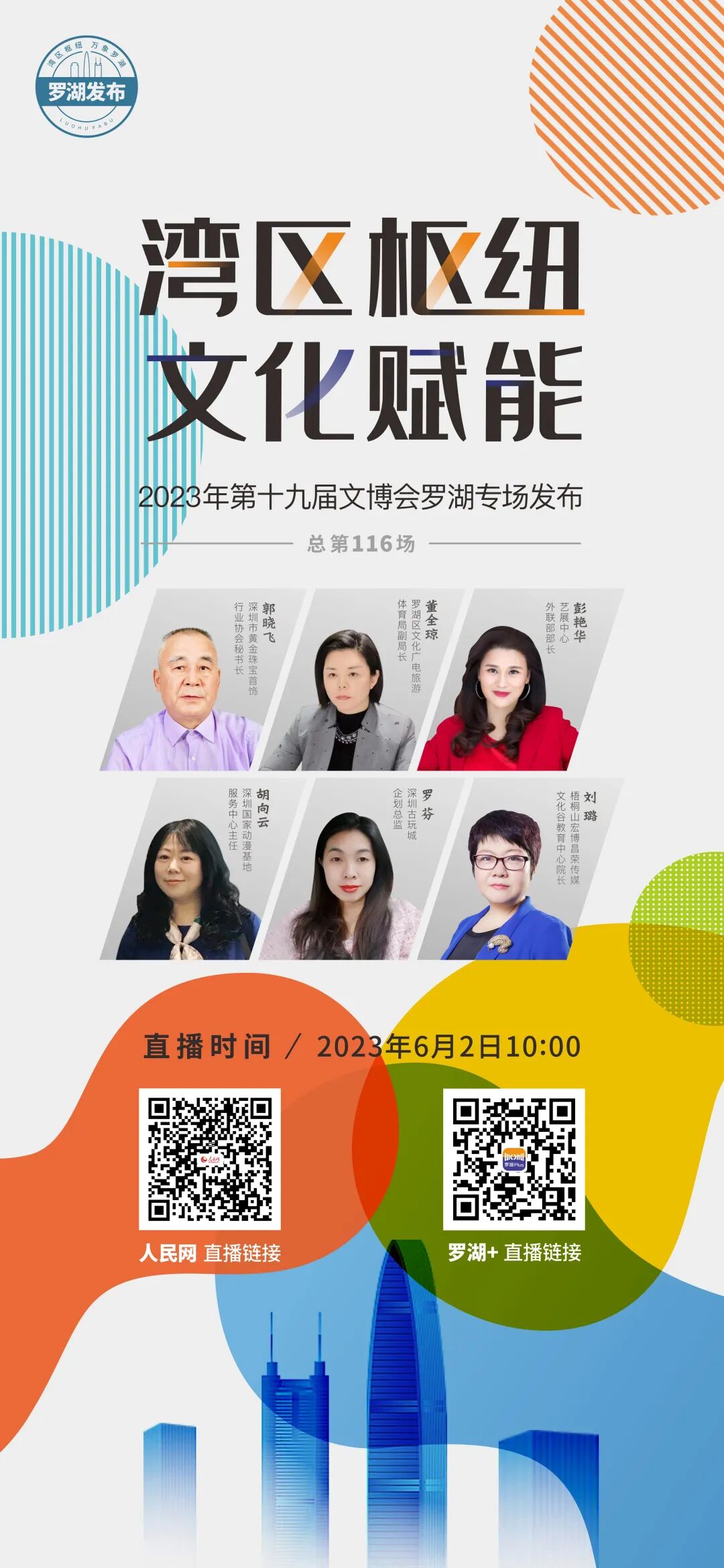 6月2日,第十九届中国(深圳)国际文化产业博览交易会开幕前夕,“罗湖发布”举行文博会专场。罗湖区文化广电旅游体育局联合水贝珠宝、艺展中心、动漫基地、古玩城、宏博昌荣等分会场,共同带来“湾区枢纽 文化赋能”主题发布。