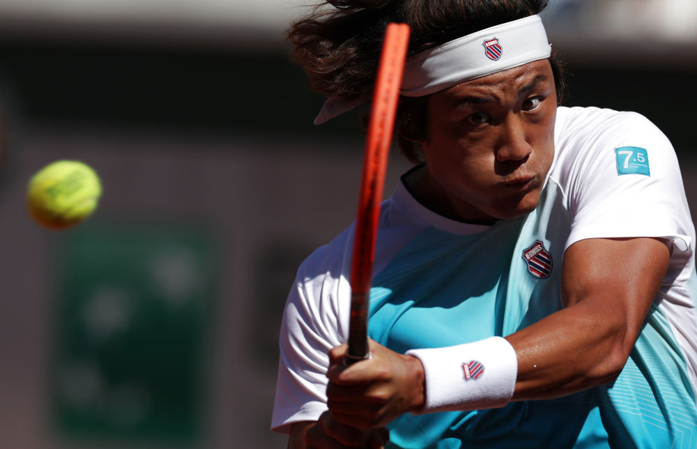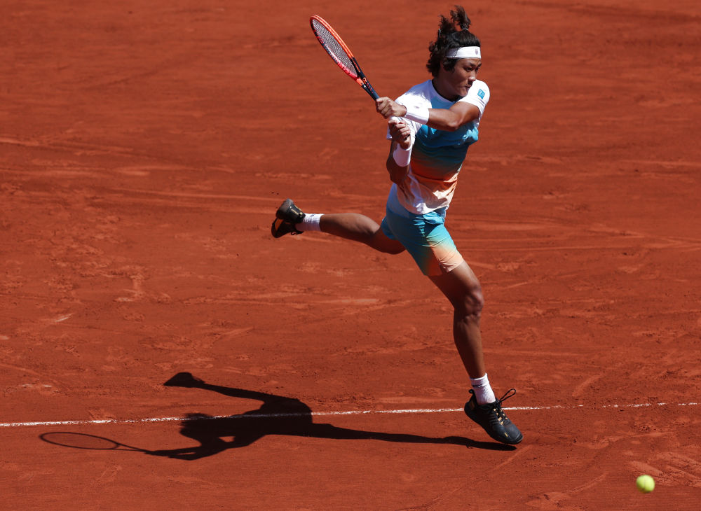 6月3日,张之臻在本届法网对阵鲁德的比赛中。新华社记者 高静 摄