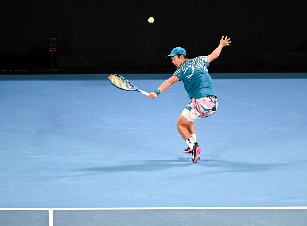 1月18日,商竣程在澳网比赛中回球。新华社记者 郭磊 摄