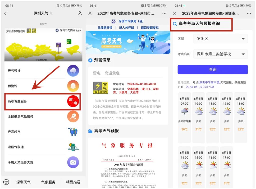2、请注意通过深圳天气APP、官方微博微信和官网等渠道及时查询最新预警预报信息,合理安排出行,提前到达考点,保证考试顺利进行。
