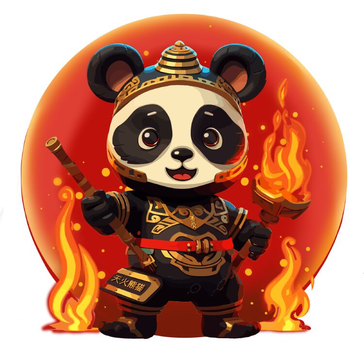 于是,两个多月前,聂筱倩和她的好朋友茹甜甜开启了这次的熊猫形象设计。“我们希望别人看到这只熊猫,就想到这是我们自己的IP,我们在设计上也融入很多中国传统文化的元素。”聂筱倩说,“天火熊猫”的原型就是从中国历来各种熊猫形象中精选出来的,头顶佩戴着一顶蓝色的古代武士帽,左手举火炬,脚蹬黑色武士靴。“所有设计元素及色彩都充满着‘东方力量’。”
