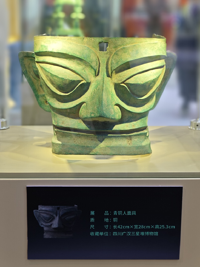 三星堆文物跟着四川馆来深圳啦!青铜神坛、青铜纵目面具和青铜人面具,好神秘~