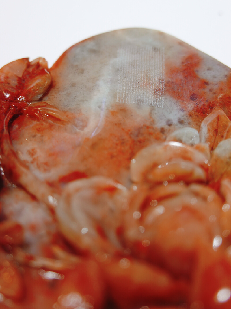 巴掌大的石头上,微刻艺术家张翼的作品《前后出师表》清晰可辨。据悉,他能在一平方厘米的石头上刻908个字,要60倍放大镜才能看清。