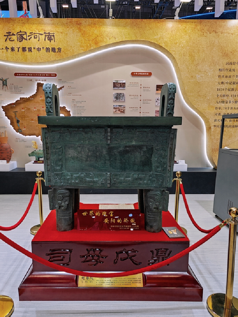 河南文脉地图。对中国考古学诞生地的仰韶文化、中国最早的都城二里头等进行集中展示。坐镇的还有中国最早的乐器一一贾湖骨笛,以及司母戊鼎、莲鹤方壶等国宝文物。